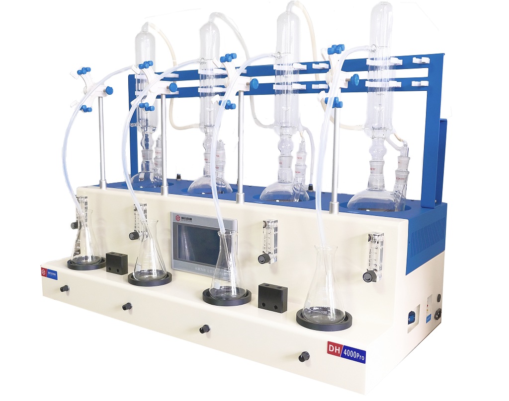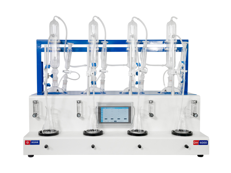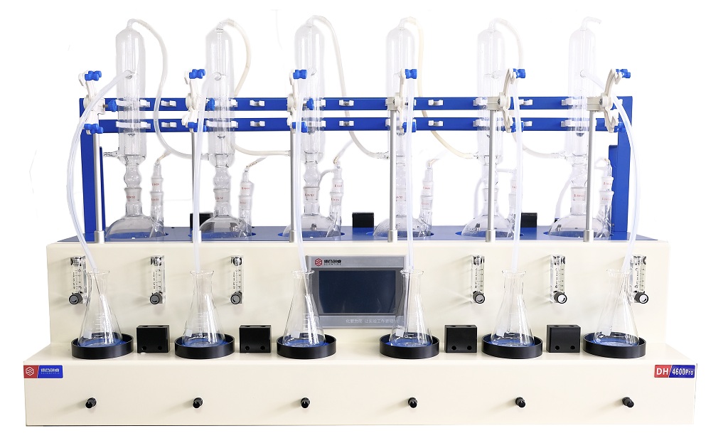 德合創睿二氧化硫測定儀嚴格遵循標準要求,整合加熱、蒸餾回流、冷卻、氮吹控制、磁力攪拌、接收工作為一體,可同時提供1-4/6個樣品的處理,從而極大地提高了檢測數據的精度、減少了工作時間。