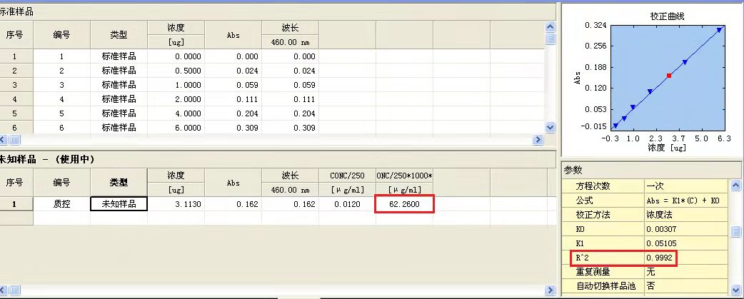 結(jié)果:相關(guān)系數(shù)R=0.9996>0.999,質(zhì)控58.8<62.26<67.6(單位μg/L),滿足標(biāo)準(zhǔn)及證書要求,結(jié)果準(zhǔn)確。
